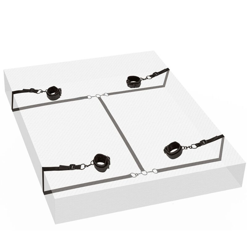 - 4 úplne nastaviteľné a odnímateľné popruhy na zápästia alebo členky | 4 pevné, nastaviteľné popruhy, ktoré sa hodia na väčšinu matracov | Možno použiť pod akoukoľvek posteľou alebo ako samostatné popruhy | Univerzálne spony a O-krúžky s otočným dizajnom pre plnú obratnosť | Mäkký a plyšový interiér s vegánskym koženým povrchom | Dvojito polstrované, dvojito prešité | Funkčný, odolný a textúrovaný dizajn