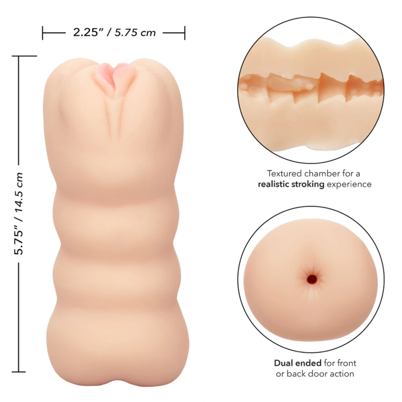 Oddajte sa fantázii života s masturbátorom Cheap Thrills The Three Way. Získajte to najlepšie z oboch svetov vďaka vzrušujúcemu dizajnu s dvoma koncami pre hru pred zadnými dverami. Unikátna textúrovaná komora a ultra mäkký, elastický materiál Pure Skin obalia váš nástroj realistickým pocitom. Či už si užívate doma alebo kamkoľvek vás potešenie zavedie, kompaktný 5,75 14,5 cm je dráždivý cestovný spoločník, po ktorom túžite. Prémiový Pure Skin je bez parfumácie, bez ftalátov a bez údržby pre skutočne explozívne výsledky.