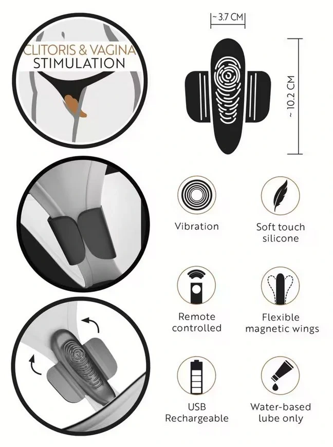 Nohavičkový vibrátor sa svojimi magnetickými krídielkami nejlepšie padne do nohavičiek s úzkým rozkrokom. U iných kusov spodného prádla nieje zaručené, že sadne.