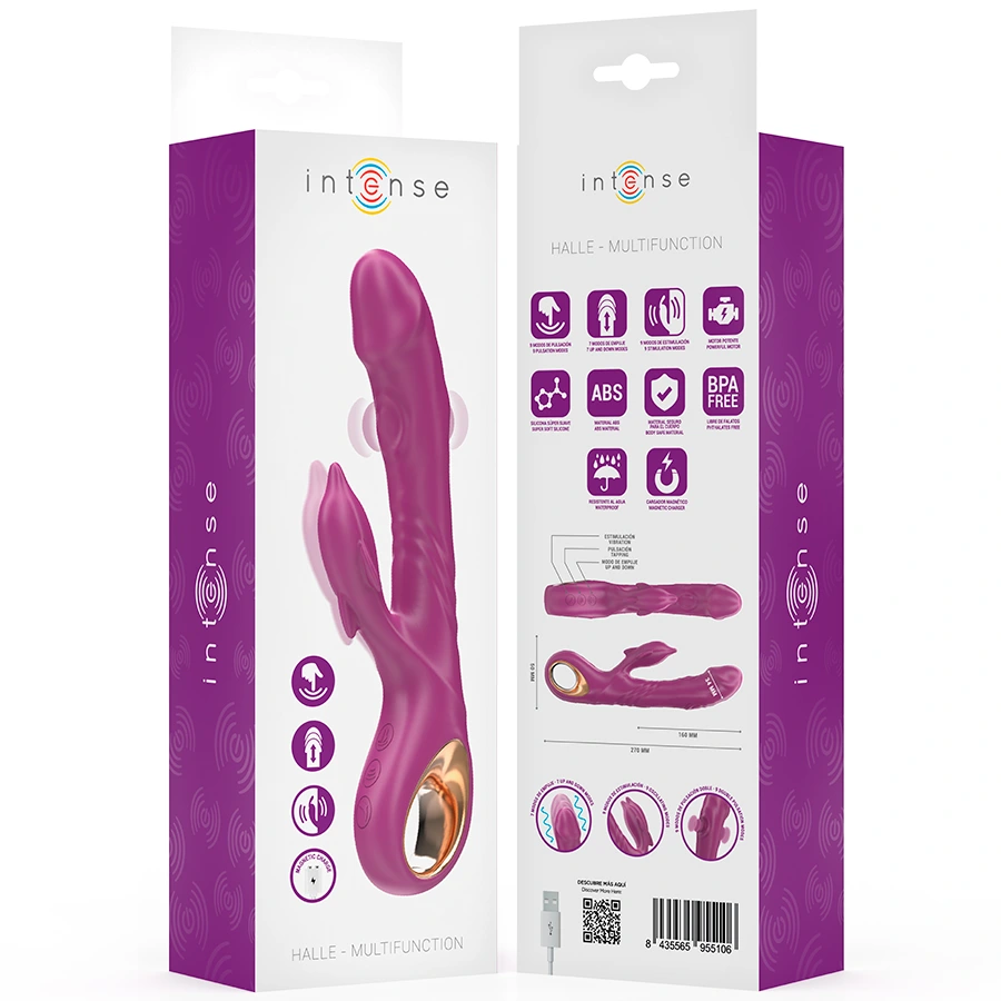HALLE es un vibrador innovador que combina la potencia de las vibraciones con una estimulación externa única, todo en un diseo divertido y elegante con form de delfín. S pomocou stimulácie a viacerých spôsobov vibrácie, je možné použiť rôzne spôsoby a nové úrovne, získať skúsenosti s plným zmyslovým a hlbokým zadosťučinením.