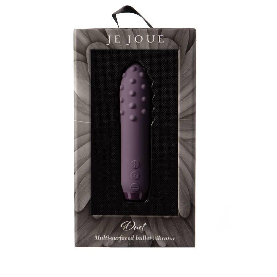 Zoznámte sa s Duetom, viacvrstvovým vibrátorom v tvare guľky s malými, zaoblenými, odstupňovanými bodmi rozkoše na jednej strane a hodvábne hladkým povrchom na druhej strane, ktorý poskytuje viacero pocitov po celom tele. Použite Duet na stimuláciu vonkajších bodov rozkoše, ako je klitoris, bradavky a stehná. A ak chcete objavovať viac, Duet je perfektným partnerom pre jemnú, plytkú penetráciu s jeho hlboko bohatými vibráciami. Vďaka hodvábne mäkkému, telu bezpečnému silikónu lekárskej kvality je Duet skvelý na dotyk a ešte lepší na zážitky. Nechajte svoje telo hlbšie rozmaznávať slávnymi vibračnými motormi Je Joue a poskytnite si bohatší a príjemnejší intímny zážitok.