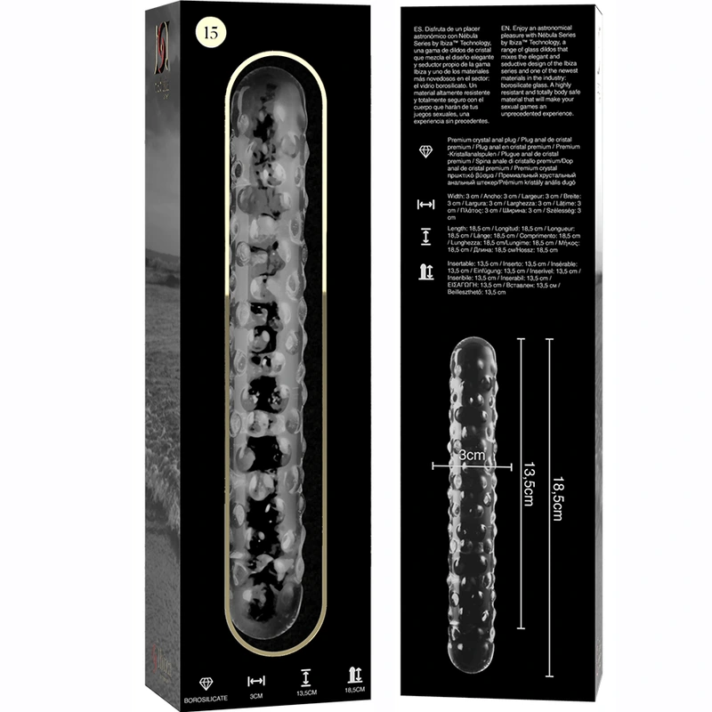 Nebula series by ibiza - model 15 dildo borosilicate glass clear 18.5 cm -o- 3 cm