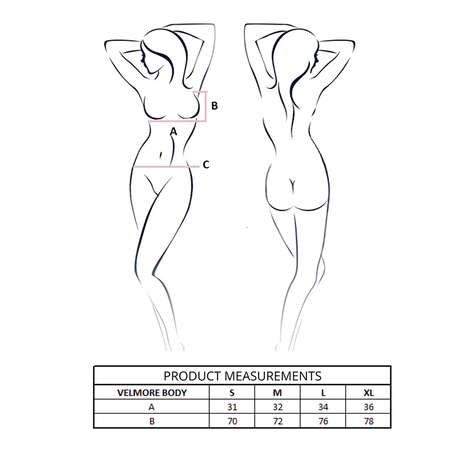 - Body VELMORE je samotnou definíciou ženskosti v jej najpôsobivejšej podobe: elegantné, všestranné a nezabudnuteľné.