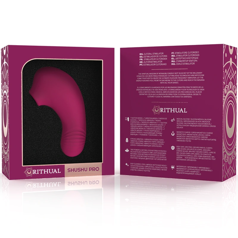 Stimulátor klitorisu SHUSHU PRO je evolúciou úspešného SHUSHU, ktorý patrí renomovanej značke RITHUAL. Tento vibrátor v elegantnom orchideovom odtieni bol navrhnutý s absolútnym zameraním na spokojnosť a potešenie tých, ktorí ho používajú. Jeho rozmery s výškou 11 cm a šírkou 4,5 cm z neho robia kompaktného a ľahko ovládateľného spoločníka na potešenie.